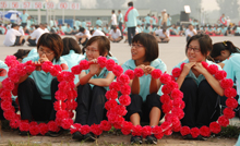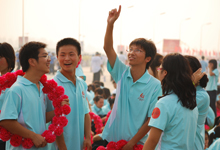 今天是三伏的第二天,高達35攝氏度的炎熱天氣成為參訓師生面臨的最大挑戰。在合練還未開始時,汗水便已經浸濕了許多人的衣背。但是酷熱的天氣沒有使參訓師生的熱情減退,一張張笑臉綻放在訓練場上,以高昂、飽滿的精神狀態迎接領導的檢閱。與前一次合練不同的是,參訓師生通過主席臺時需要配合毛主席的講話發出歡呼。激情的呼喊配合著歡樂的笑臉,青春的氣息在訓練場上顯露無遺。此外,我校國慶方陣的整體水平也有了極大提高,整齊的排面、洪亮的口號聲、有節奏的揮舞花環呈現在領導面前。在場的領導和老師們的陣陣掌聲是對我校國慶方陣最好的鼓勵與肯定。