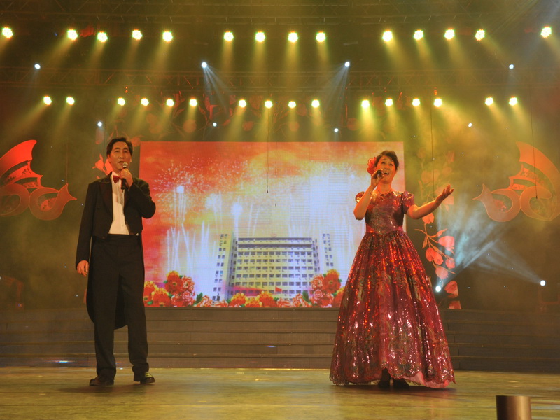 “我從78年復校的時候就在工商大學的黨委工作了,阜成路校區西區所有的廣播器都是我掛上去的,(我)對這個學校的一點一滴都有著很深的感情。當我們在20天前接到演出的通知,便加緊排練,每一次排練都是從本部趕來。(我)以前在部隊的文工團工作,并且在這之前我們已經排練了4次,所以今天并不緊張而且很高興、很興奮。要記住后生可畏,還有長江一浪推一浪,是我最想對學生們說的。”