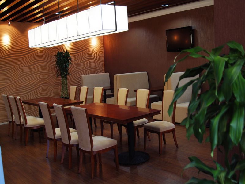 餐廳設(shè)有“VIP包房、茶餐大廳、陽光餐廳”三項功能服務(wù)區(qū)。VIP包房共有7間,可接待每桌8-20人不同規(guī)模的宴請;茶餐大廳可容納200人同時用餐,可接待大型會議、宴會、婚宴;陽光餐廳是經(jīng)過特意設(shè)計的,環(huán)境清新、自然、雅致,中西合璧,是小酌、休閑的理想場所。
