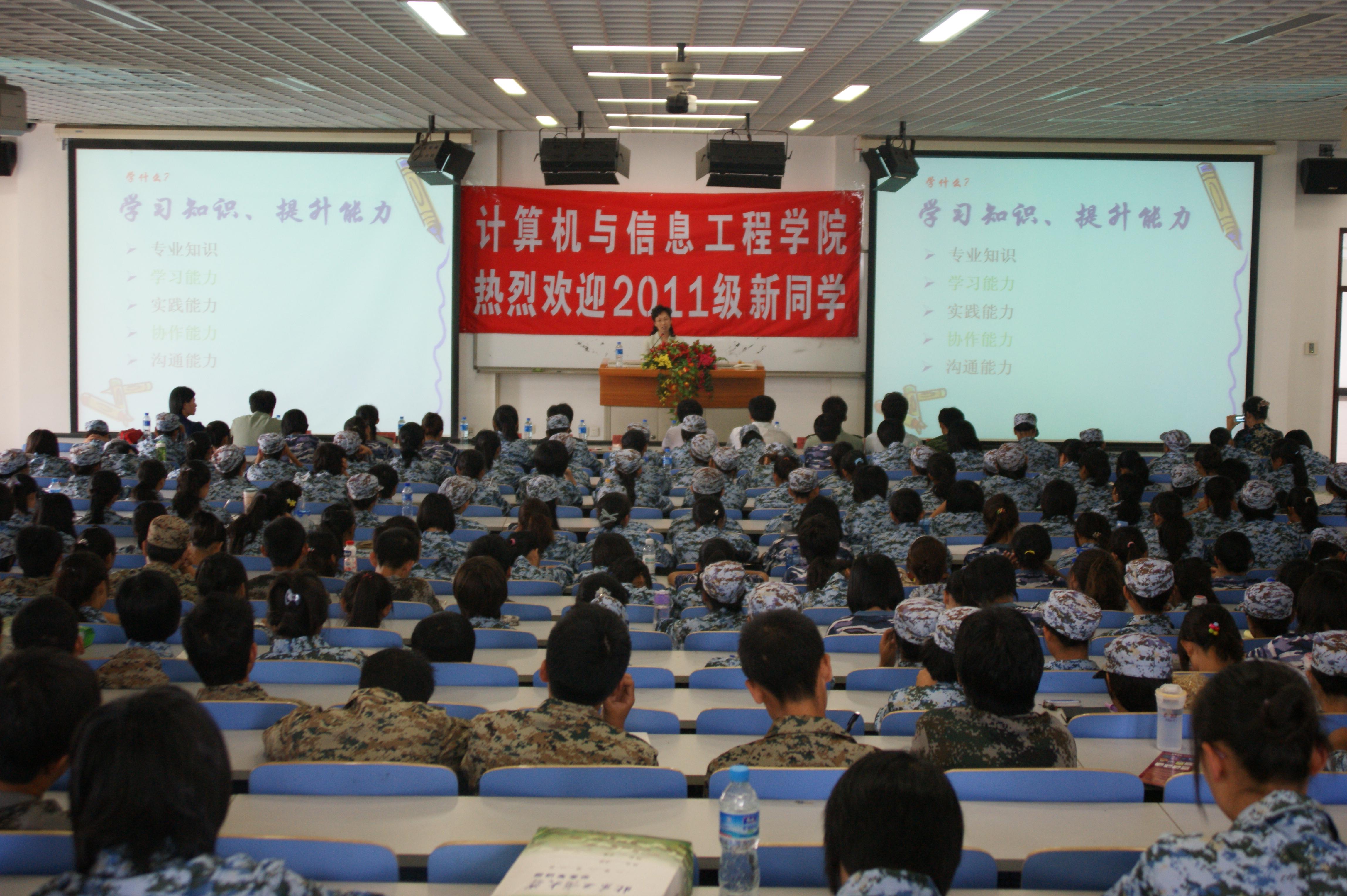 在會上,黨總支書記陳誼教授致開幕詞歡迎2011級新生,她針對為什么學、學什么、怎么學三個方面展開講話,強調了大學生要進行科學系統的職業生涯規劃,學習知識提升能力,精細規劃追求卓越,提升素質全面發展,要盡快熟悉計信學院這個大家庭,希望新生們在大學學習生活中腳踏實地,不斷提高培養創新實踐能力。受劉載文院長的委托,陳書記向新生介紹了學院的整體情況。教學副院長姜同強教授則就新生最關心的課程安排及學業規劃做詳細的說明,要求各位新生要努力學習專業知識,嚴格遵守校規校紀。黨總支副書記鄭喜姣老師也提出對學生提出了幾點期望,希望各位同學以成長成才為目標,全方面提升自己的綜合能力,增強自己的契約意識、進取意識和進取意識,成為對社會有用的棟梁之才。
