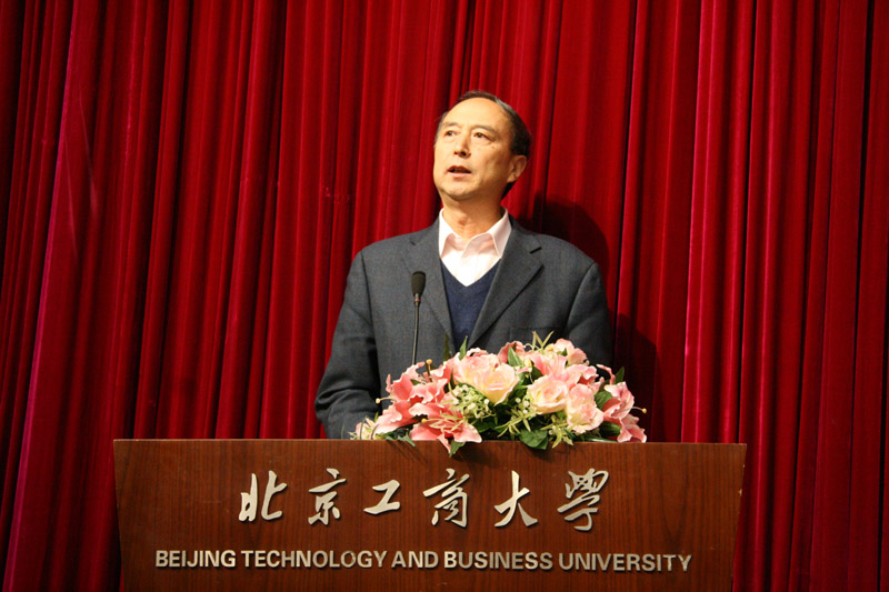 最后,大會進行了北京國粹藝術傳承促進會、北京青春國粹聯盟北京工商大學分會成立暨揭牌儀式。北京工商大學分會是北京國粹藝術傳承促進會建立的第一個高校分會。為紀念一二·九運動76周年,北京京劇院為我校師生演出了現代京劇《沙家浜》全劇。全體演員以精彩絕倫的唱腔和表演博得了在場觀眾的陣陣喝彩。