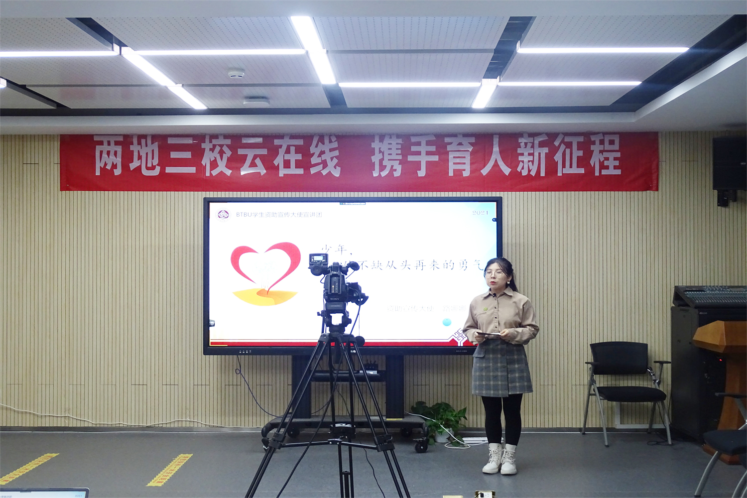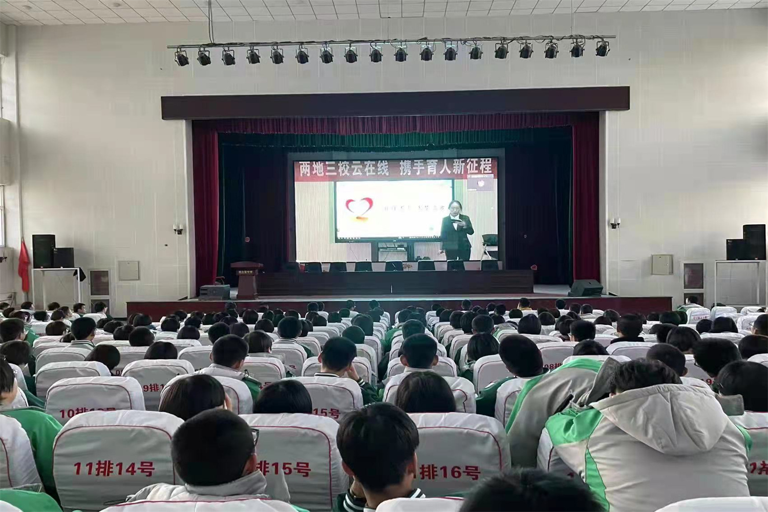 12月3日,我校與河北蔚縣西合營中學、桃花鎮初級中學通過網上在線直播的方式,開展了以“兩地三校‘云’”在線,攜手育人新征程”為主題的勵志宣講活動。我校6名“學生資助宣傳大使”、西合營中學100余名家庭經濟困難學生和桃花中學全校230名師生參加活動。