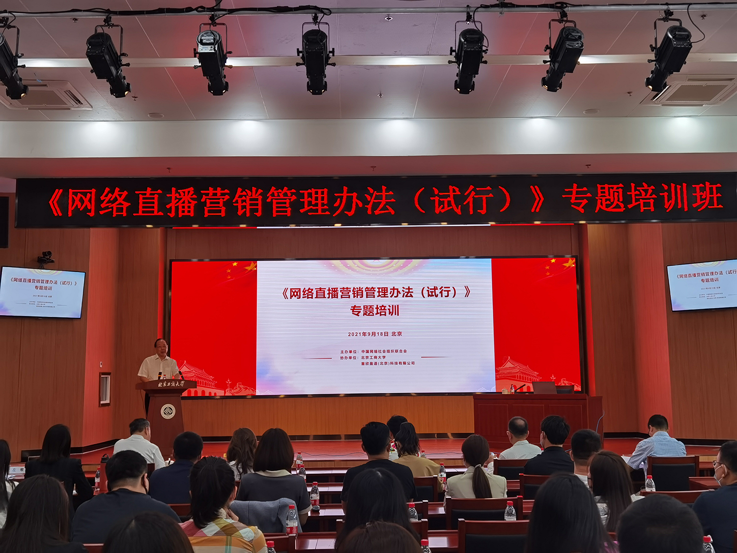 為加快落實(shí)《網(wǎng)絡(luò)直播營銷管理辦法(試行)》,進(jìn)一步發(fā)揮中網(wǎng)聯(lián)橋梁紐帶作用,提升平臺(tái)和主播等主體責(zé)任意識(shí),促進(jìn)新業(yè)態(tài)健康有序發(fā)展。近日,由中國網(wǎng)絡(luò)社會(huì)組織聯(lián)合會(huì)主辦、我校電商與物流學(xué)院協(xié)辦的《網(wǎng)絡(luò)直播營銷管理辦法(試行)》專題培訓(xùn)在阜成路校區(qū)舉行。黨委書記黃先開受邀出席會(huì)議并致辭。培訓(xùn)開幕式由學(xué)校人事處處長、電商與物流學(xué)院執(zhí)行院長左敏主持。