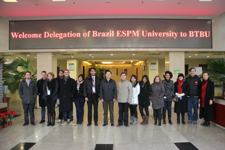 1月14日,巴西廣告營銷高等學校(ESPM)國際部國際項目顧問塞瑟•法拉吉(Cesar Alves Ferragi)一行11人訪問我校。李朝鮮副校長會見了來訪代表團。兩校計劃于2014年秋季學期啟動學生交換項目。
