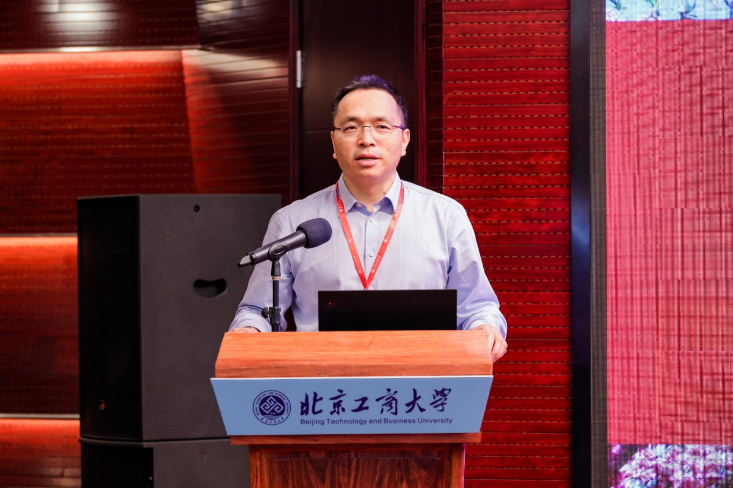 黨委副書記、校長孫寶國院士致開幕辭,對與會專家致以誠摯地感謝。他介紹了北京工商大學的基本情況和發展規劃,表示學校樹立了“雙一流”奮斗目標,并總結了“一條主線、兩個要求、三個學院和高精尖學科、四個本科專業、五個一級博士點、六個前百學科、七個學科門類,八個未來一級博士點”的成就和愿景。中國人工智能學會會長戴瓊海院士、北京高教學會會長線聯平、中國教育技術協會常務副會長張少剛分別為論壇致辭。