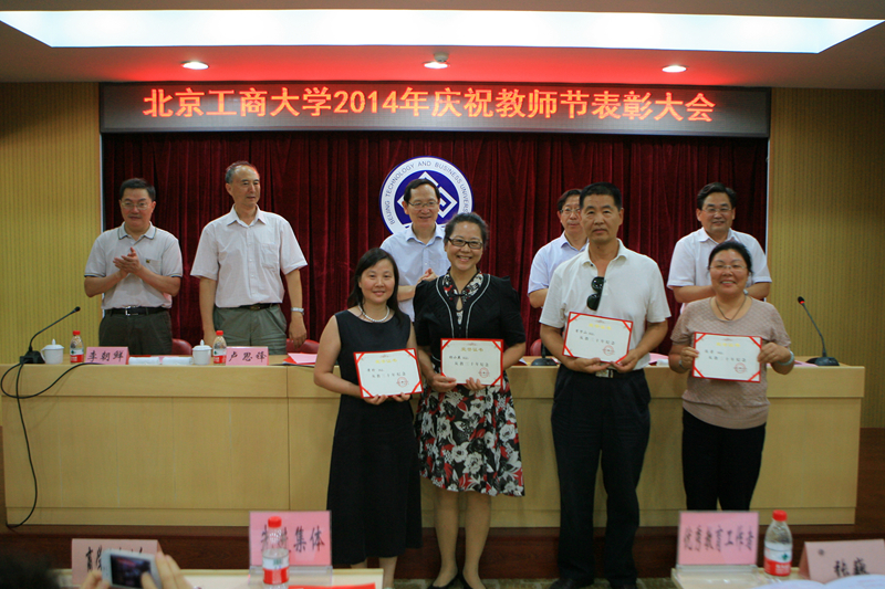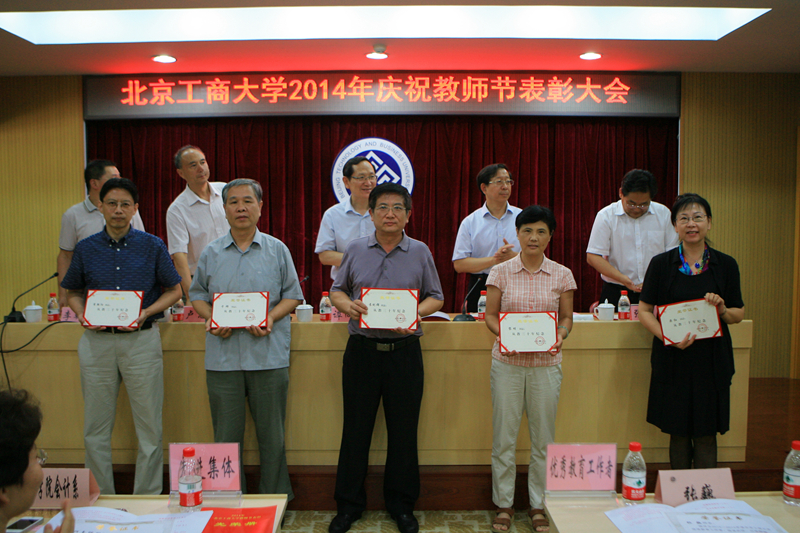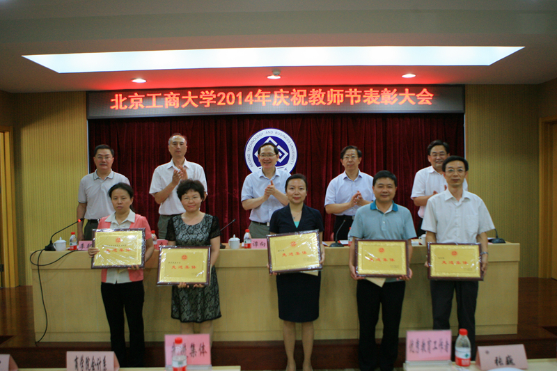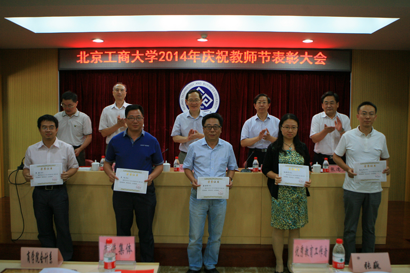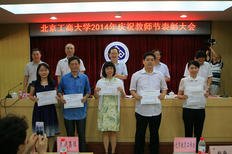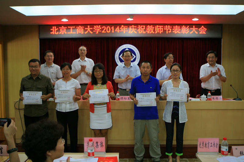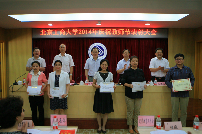 值此第30個(gè)教師節(jié)之際,9月10日下午,學(xué)校在阜成路校區(qū)舉辦2014年慶祝教師節(jié)表彰會(huì)。黨委書記譚向勇、校長(zhǎng)孫寶國、黨委副書記盧思鋒、副校長(zhǎng)李朝鮮,2014年首都勞動(dòng)獎(jiǎng)?wù)芦@得者、2014年北京高校教學(xué)名師,2013--2014年度學(xué)校優(yōu)秀教師、優(yōu)秀教育工作者、先進(jìn)集體,從教30年教職工代表及師生代表等共聚一堂,歡度節(jié)日。黨委副書記、紀(jì)委書記、工會(huì)主席張德玉主持表彰活動(dòng)。