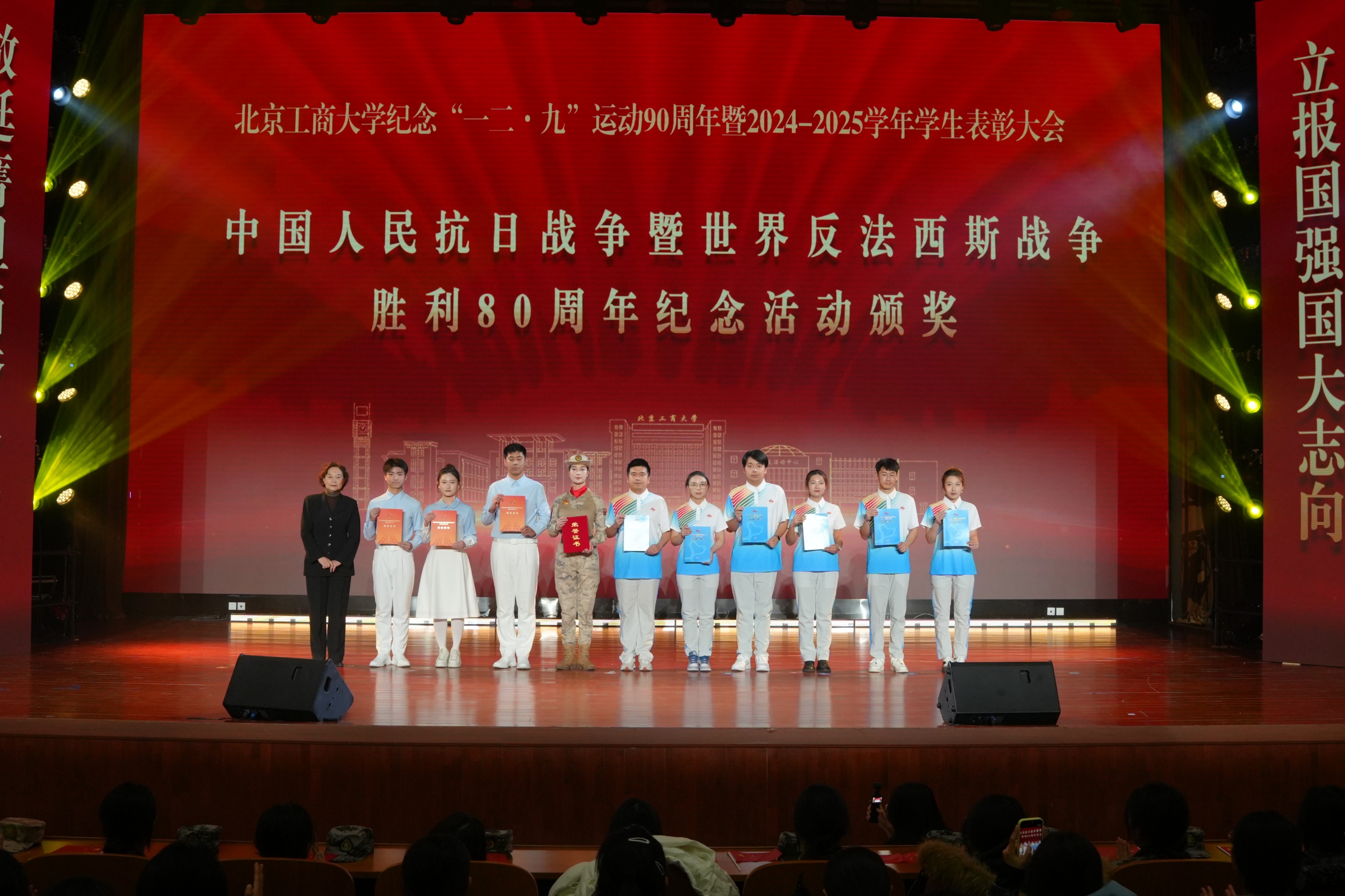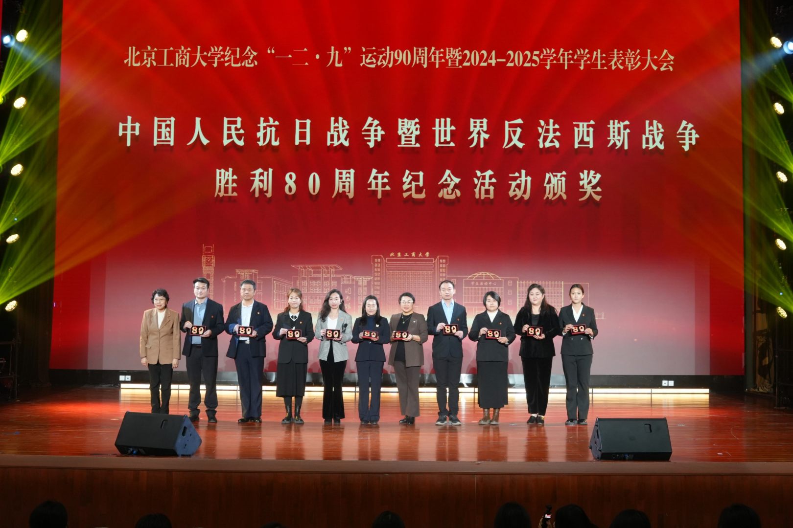 大會在首部校史舞臺劇《炬火相傳:青春的誓言》中拉開帷幕。該劇以北工商的紅色校史為依托,以老校長姚依林為精神符號,藝術化地再現了“一二·九”運動中的真實歷史瞬間,以實際行動踐行著“請黨放心,強國有我”的青春誓言,描繪出北工商青年弘揚偉大抗戰精神、與工商共成長、與祖國同奮進的動人圖景。這份跨越九十年的青春熱血與愛國赤誠,引發全場強烈情感共鳴,掌聲經久不息。