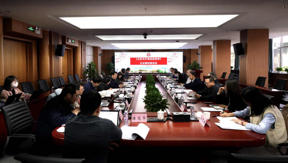 學校項目組匯報了項目進展和法條草擬情況。法學院副院長李晗介紹了北京市外商投資立法的研究情況,經濟學院郭志超,法學院劉禹、陳冠華、馬擎宇、于華溢對北京市外商投資立法研究階段性成果分別作了匯報。張毅、公萍對北京市外商投資立法研究情況分別作了回應與指導。