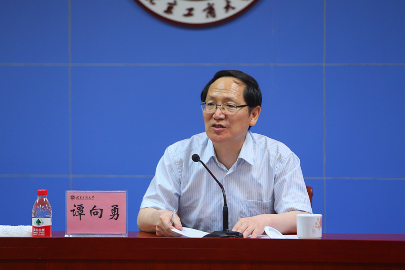 5月29日下午,學校黨委書記譚向勇在阜成路校區為處級以上領導干部講黨課。全體校領導和全體中層干部參加報告會。會議由校長孫寶國主持。