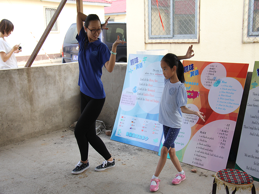 從調(diào)研到實(shí)踐,烈日炎炎,外國(guó)語(yǔ)學(xué)院暑期實(shí)踐分團(tuán)的成員前往竇店小高舍村周轉(zhuǎn)房社區(qū),給當(dāng)?shù)貙W(xué)齡前兒童帶來(lái)生動(dòng)的“趣味英語(yǔ)課”——顏色俚語(yǔ)、各國(guó)國(guó)旗、英文歌曲。通過(guò)共同學(xué)習(xí),其樂(lè)融融,成員們與孩子們?nèi)跒橐惑w。