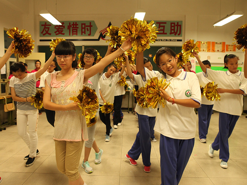 為學生綜合全面發(fā)展,培養(yǎng)學生走進第二課堂,外國語學院實踐團將大學社團文化引入中學,以專業(yè)為核心,開設“語言文化社團課”,為擅長歌舞、朗誦、文學的中學生搭建了提升自我、展現(xiàn)自我的興趣平臺。朗誦社團以英文詩歌What A Wonderful World傳授朗誦技巧,糾正口語發(fā)音,有助于學生樹立自信。舞蹈社團將傳統(tǒng)民族舞蹈和青春校園舞蹈結合,初伏的桑拿天阻擋不住學生對于舞蹈、詩歌的喜愛,實踐團成員的汗水更凝聚炎炎烈日中的敬業(yè)精神和師生情誼。
