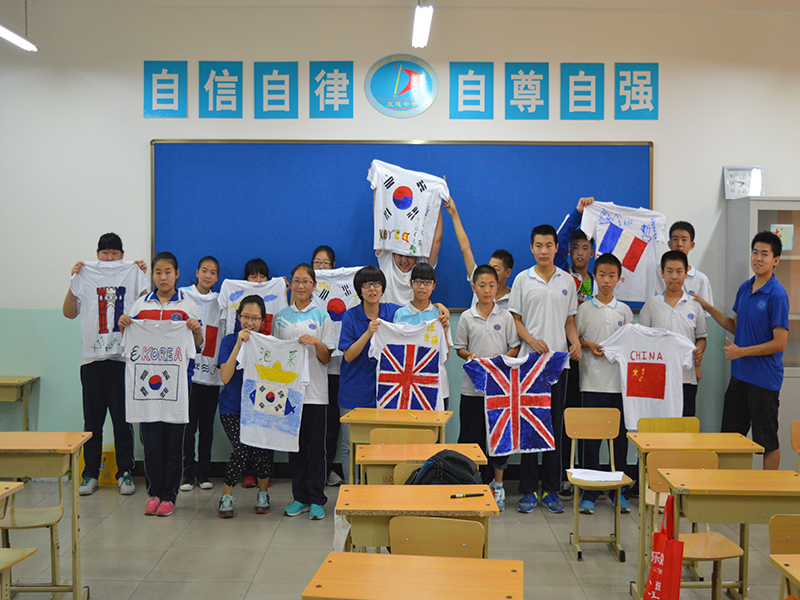 今年是“中國人民抗日戰(zhàn)爭暨世界人民法法西斯戰(zhàn)爭勝利70周年”,為此,實踐團的小老師為同學們準備了黨史教育課。從九一八事變到七七事變再到南京大屠殺,從平型關大捷到臺兒莊戰(zhàn)役再到百團大戰(zhàn)。整堂課采取分組搶答,累計積分的形式。同學們爭先恐后地回答老師提出的有關抗日戰(zhàn)爭的問題,課堂氣氛活躍。工藝美術課上,同學們在老師的指導下,以“紀念抗日戰(zhàn)爭勝利70周年”和“中國夢”為主題為班級設計板報,同學們拿著五彩的畫筆描繪著抗戰(zhàn)過程中的英雄事跡和自己心中的中國夢,以這樣的方式銘記歷史,展望未來。接下來的舞蹈賞析課,老師為同學們介紹了舞蹈的分類,即傳統(tǒng)表演舞蹈、流行表演舞蹈、傳統(tǒng)實用舞蹈和流行實用舞蹈。