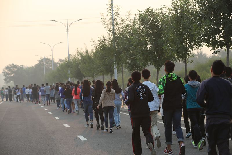9月16日早6:30,學(xué)校良鄉(xiāng)校區(qū)學(xué)生宿舍打破了往日的寧?kù)o,同學(xué)們?nèi)宄扇骸⒄勑︼L(fēng)生,紛紛前往籃球場(chǎng)、學(xué)生活動(dòng)中心、圖書(shū)館等地點(diǎn)集合。6:50,近3000名2015級(jí)新同學(xué)以學(xué)院為單位,正式開(kāi)始了第一天的晨讀晨練活動(dòng)。