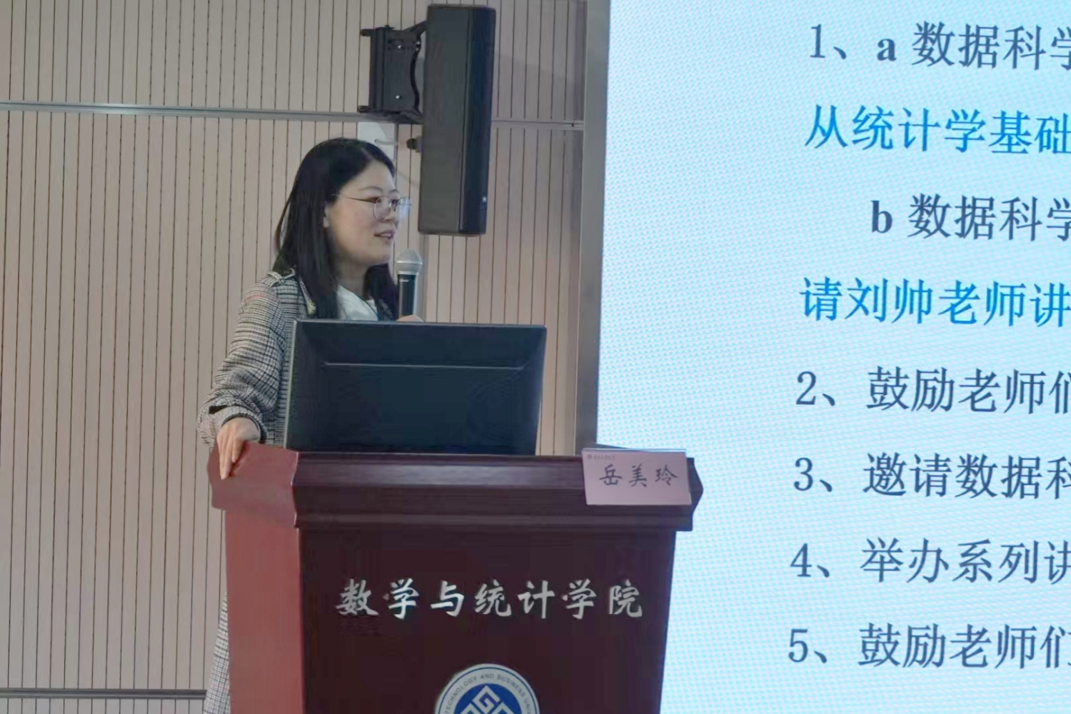 數學與統計學院副院長王康以“錨定一流學科,突出交叉特色,明晰戰略定位”為主題,圍繞學科布局、人才培養、研究梯隊和科研發展四個方面進行專題匯報。應用統計系主任謝峰、數據科學系主任岳美玲、經濟統計系主任趙江分別就各系的基本情況、研究方向和未來規劃進行了匯報交流。