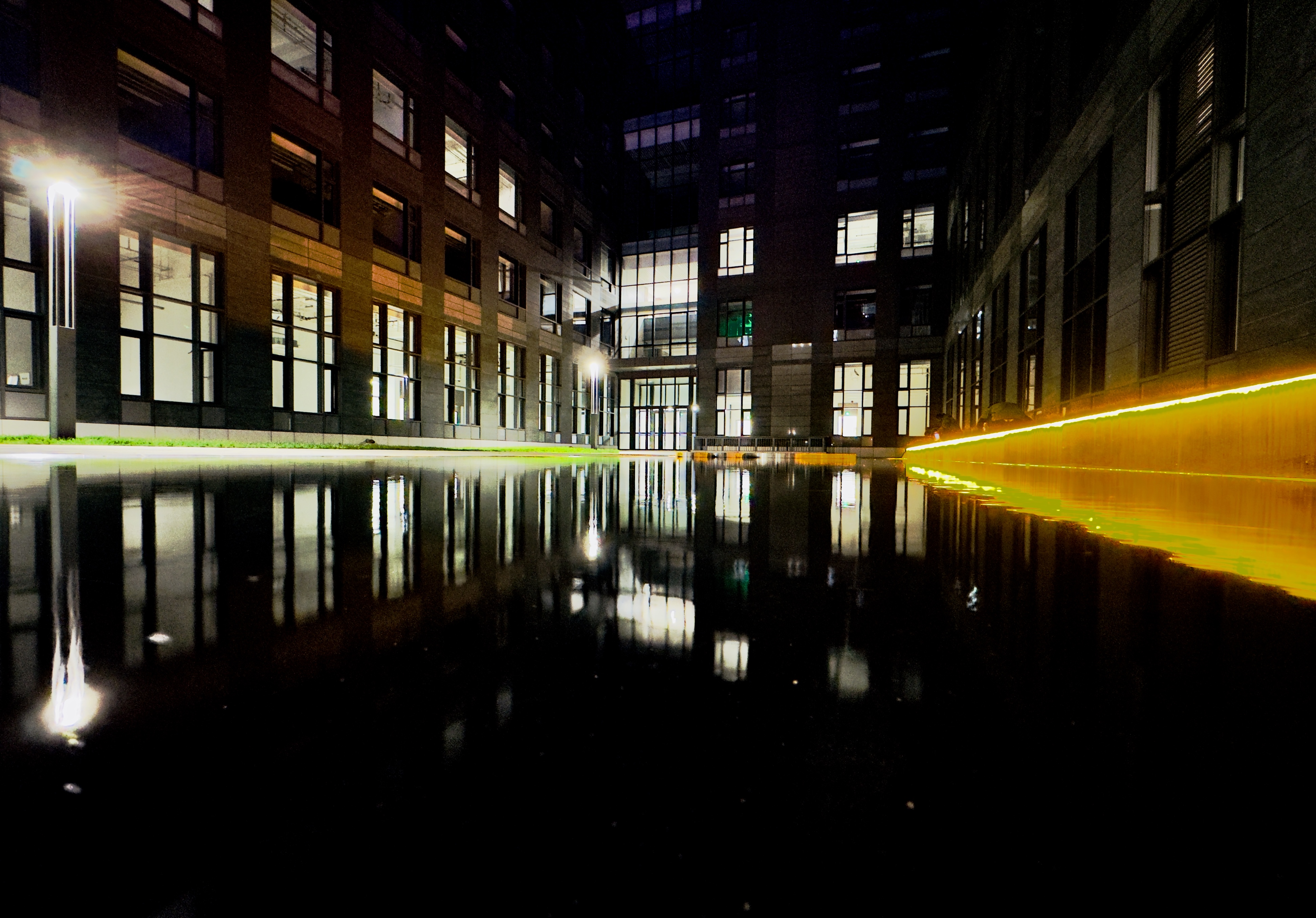 “匯思秘境”是一個靜謐的休憩空間,鏡面水景營造出沉思的氛圍。俯瞰水面,大樓與天空盡收眼底。清晨,它映射一輪日光;傍晚,它托舉一片夕陽。