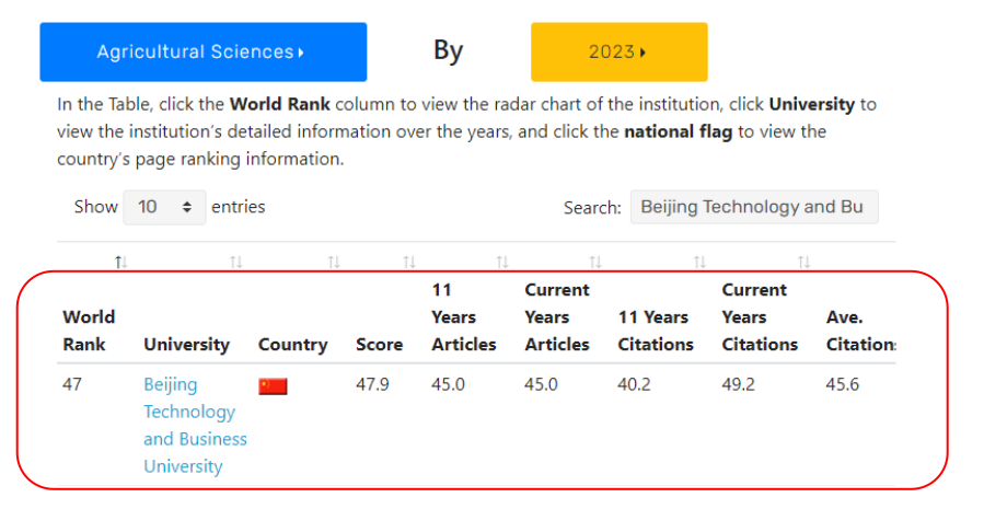 近日發布的2023年NTU世界大學排名中,我校以食品為主要支撐的農業科學領域世界大學排名由2022年的第52位上升為2023年的第47位,取得了突破,這標志著該領域的建設取得了顯著的實績,學術水平和學術影響力持續提升。
