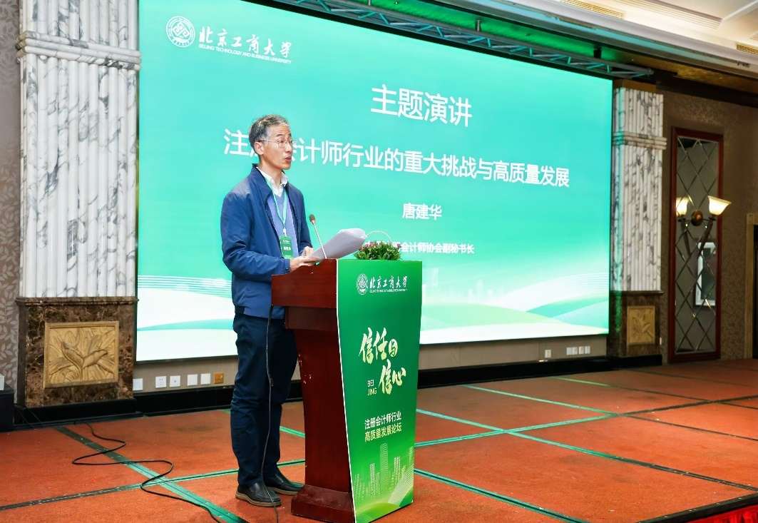 中國注冊會計師協會副秘書長唐建華發表了題為“把握機遇、直面挑戰、積極作為,推進注冊會計師行業高質量發展”的主題演講。他分析了當前行業的形勢與任務,強調在全面深化改革的背景下,要積極把握新機遇,肩負新使命。他接著剖析了行業面臨的挑戰及應對策略,提出要以職業化建設為核心,以“五化”為目標,引領行業實現高質量發展。他指出要提振信心、增進信任,堅定不移地推動行業邁向高質量發展。