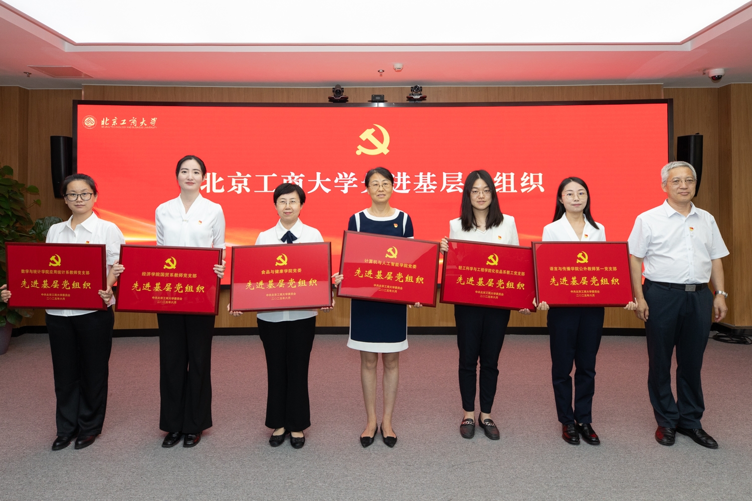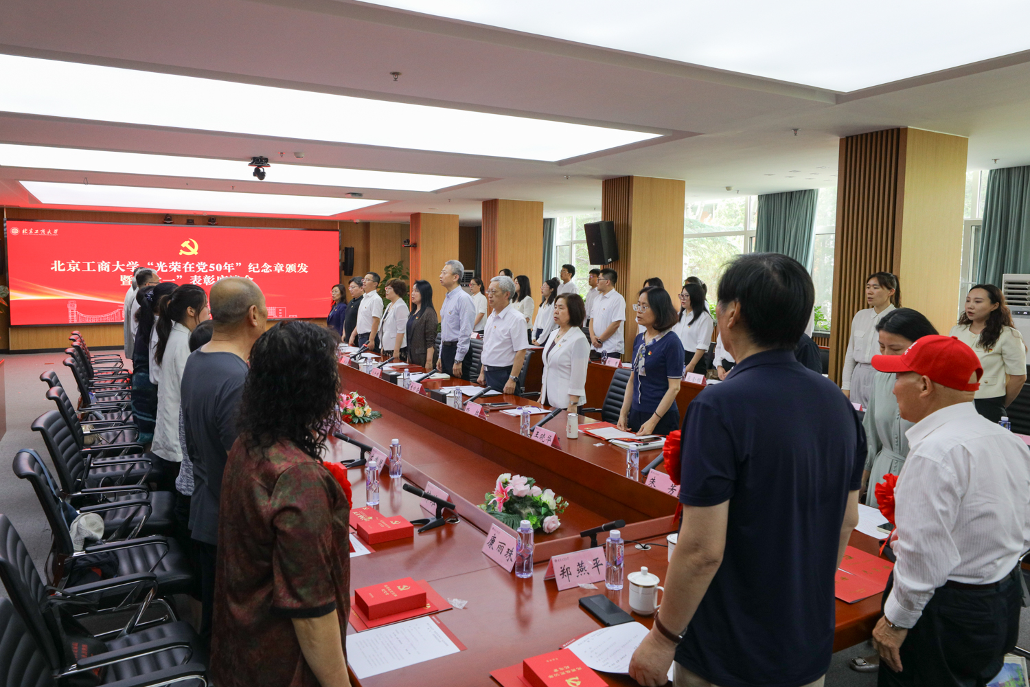 宋曉欣宣讀“光榮在黨50年”紀念章獲得者名單、北京市“六好”離退休干部示范黨支部和學校關于表彰優秀共產黨員、優秀黨務工作者和先進基層黨組織的決定。今年共有22名黨齡達到50周年、一貫表現良好的黨員榮獲“光榮在黨50年”紀念章,離退休黨委退休第一黨支部獲評北京市“六好”離退休干部示范黨支部。經學校黨委研究決定,授予王博等55名同志“北京工商大學優秀共產黨員”稱號,授予王遠芳等20名同志“北京工商大學優秀黨務工作者”稱號,授予機關黨委等20個基層黨組織“北京工商大學先進基層黨組織”稱號。